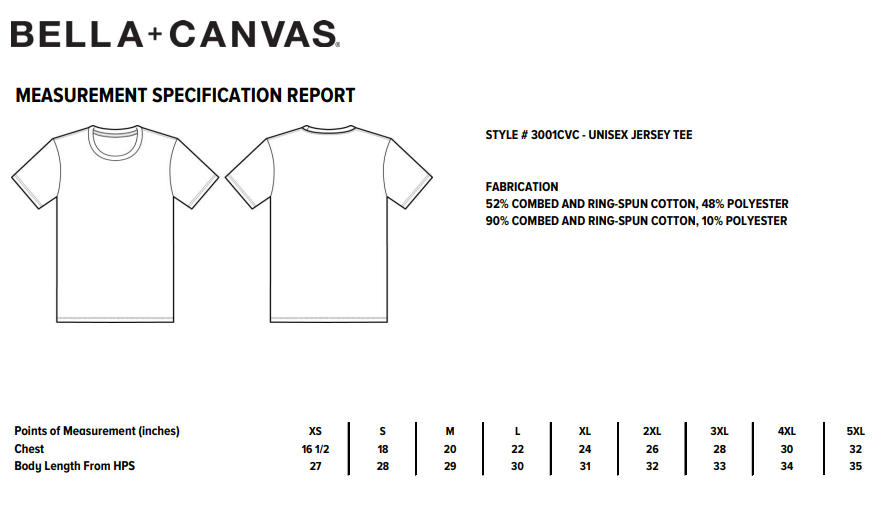 Features: Side-seamed. Retail fit. Unisex sizing. Shoulder taping. 52% Airlume combed and ring-spun cotton, 48% poly, 32 single 4.2 oz.