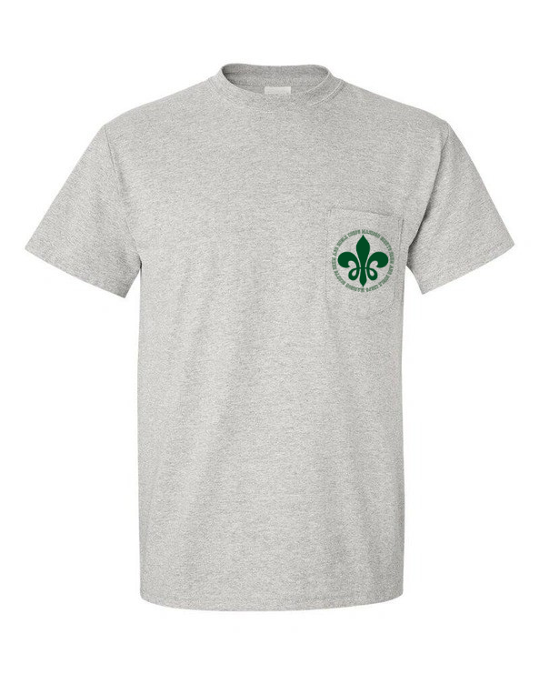 Effortlessly classic, this ash-gray Madison Scouts pocket tee is all about simple style and everyday comfort. The left chest pocket features the timeless Madison Scouts Circle Fleur logo, with “Madison Scouts Drum and Bugle Corps” encircling the fleur.