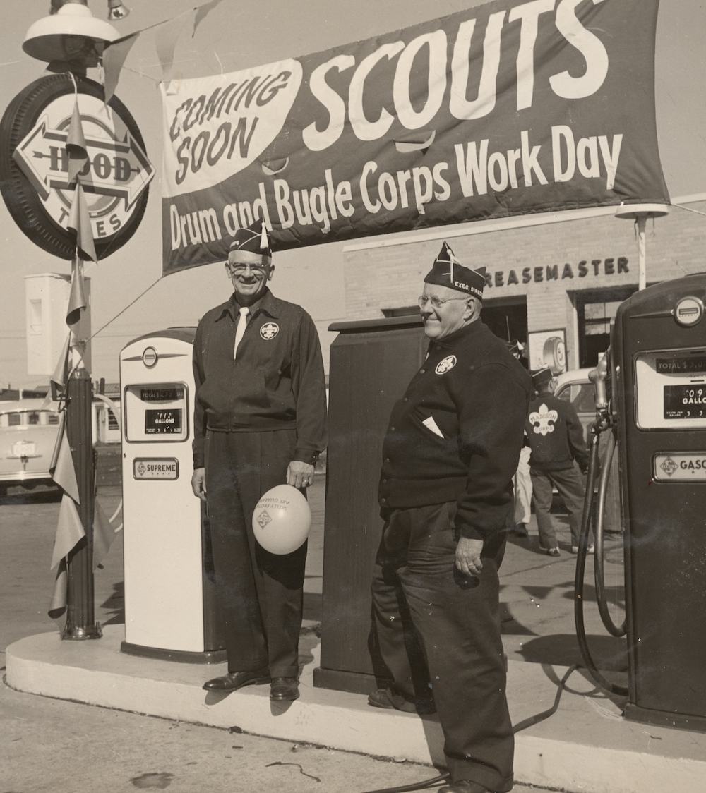 A time honored tradition, the classic "Madison Corps" jacket dates back to the early 1950s when the drum corps started to travel more consistently. The jackets, originally available in an Eisenhower cut or baseball-style (both pictured), were also worn during service projects to identify the corps members to the public. The back of the jacket featured a fleur-de-lis appliqué along with an embroidered "Madison Corps", a feature that has endured over the history of the corps.