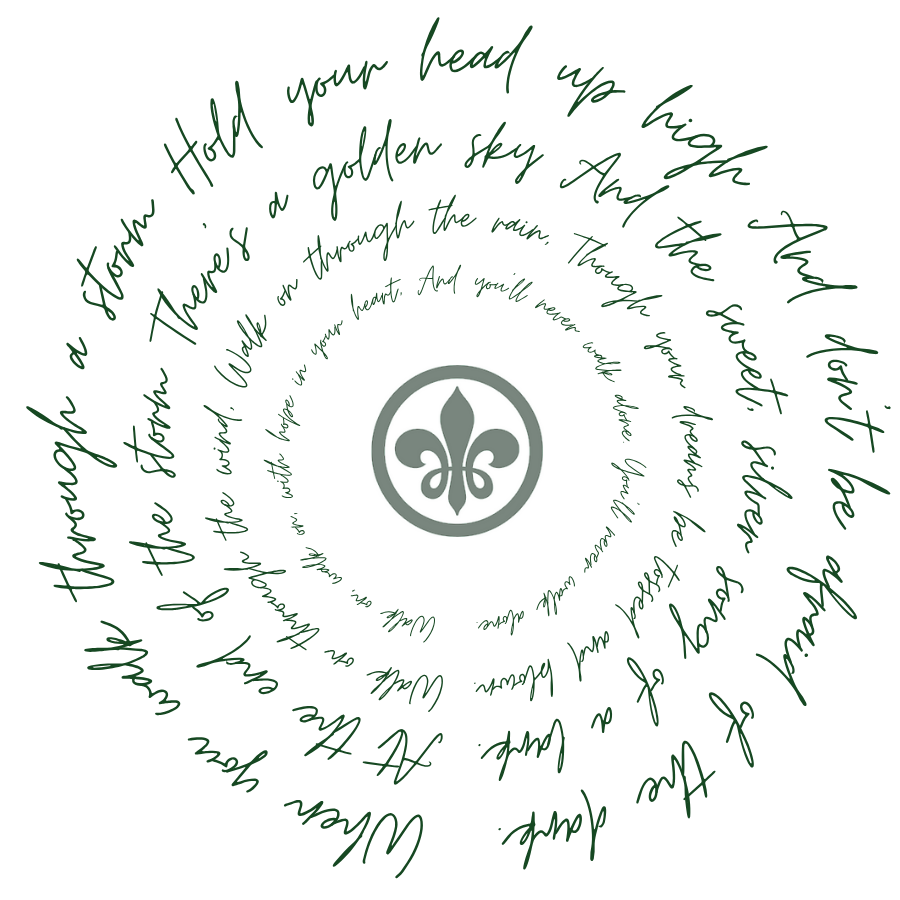 Carry the spirit of the Madison Scouts with you wherever you go. This 3-inch round vinyl sticker features the full lyrics to the corps song Never Walk Alone — a timeless reminder of resilience, hope, and unity.