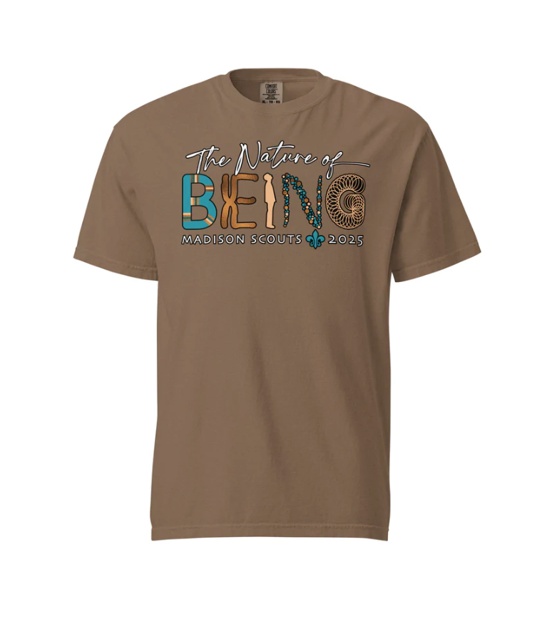 The Scouts' 2025 tour tee features "The Nature of Being" graphic on a unisex Garment-Dyed Heavyweight Comfort Colors T-Shirt with a structured-fit shirt, made from a thick but breathable material.